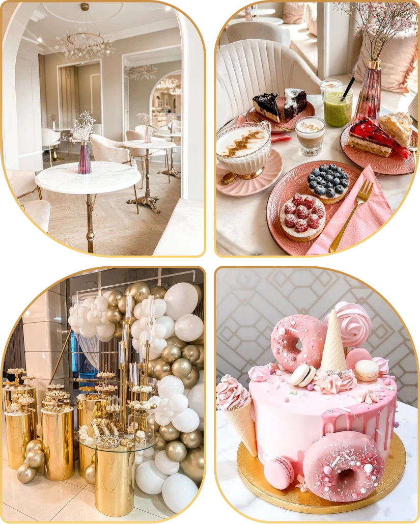 Wybierając spośród naszych specjałów, klient może zdecydować się na indywidualnie zaprojektowane torty okolicznościowe lub bogato zaaranżowane słodkie stoły. Każde z tych rozwiązań jest stworzone, by uczcić wyjątkowe chwile w życiu.